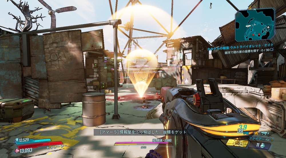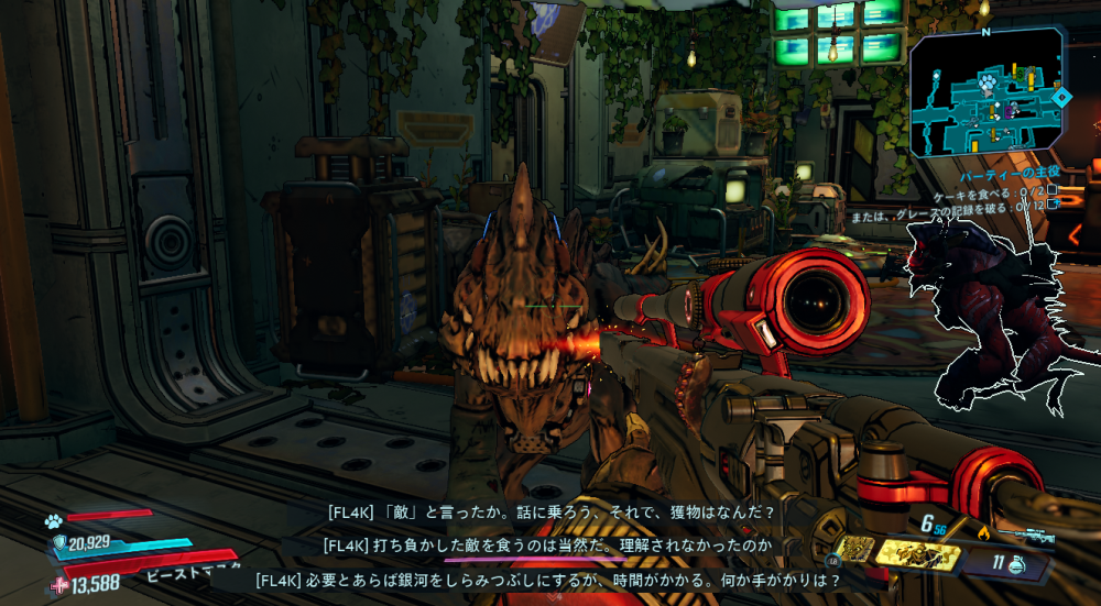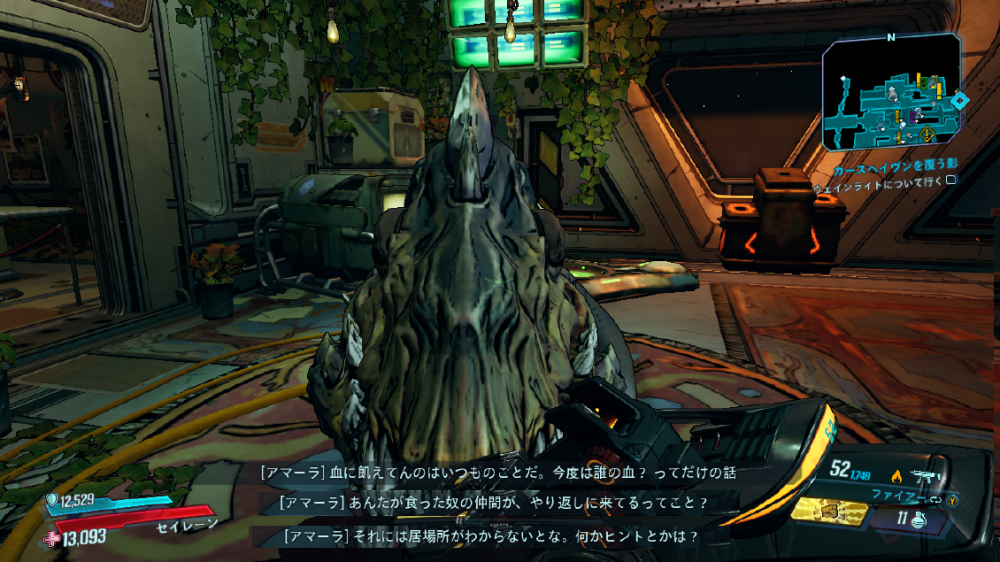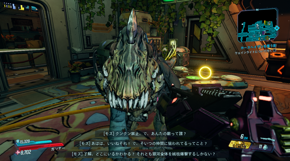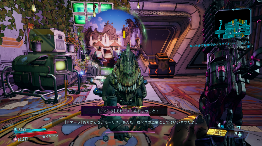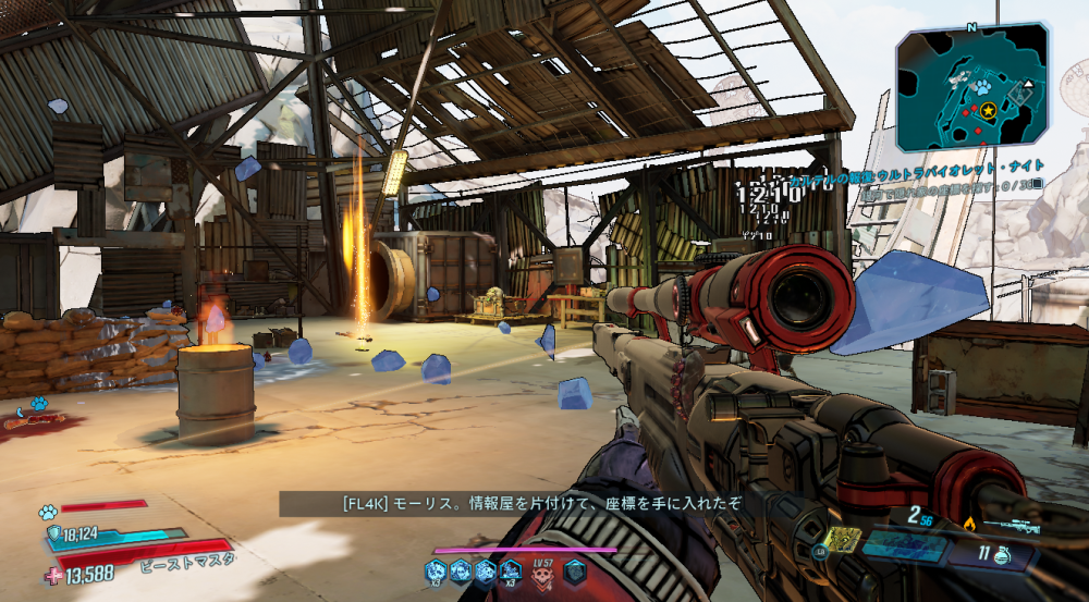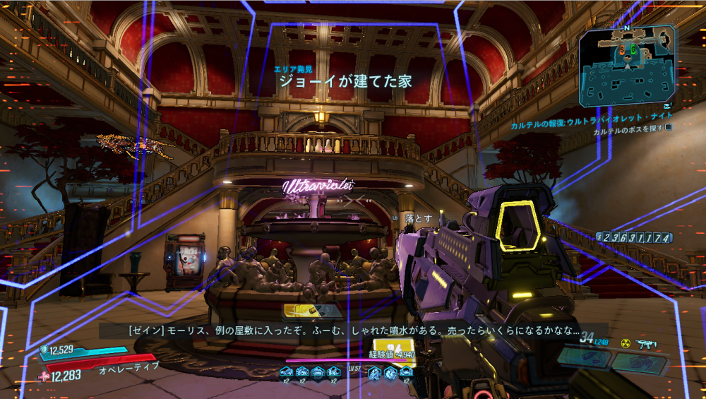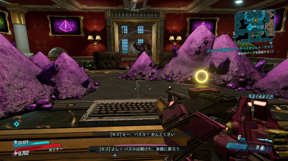 2020/05/22 Category : ボダラン3キャラ台詞 台詞:カルテルの報復 2020/4/26~2020/6/4 期間限定イベント「カルテルの報復」のキャラ個別台詞まとめ モズ→アマーラ→FL4K→ゼインの順番 1:モーリスに「【敵】から狙われているので助けてほしい」と依頼される 2:どうやらモーリスがカルテルとトラブルを起こした。その報復を受けているという。 3:銀河のどこかにいる、敵の居場所をどうやって特定したものか… 4:情報屋を倒し、ビーコン発動。敵の居場所の座標を入手する 5:情報を集めて敵の本拠地「ヴィラ・ウルトラバイオレット」に突入。1つめのゲートを突破。 6:2つめのゲートを突破。先に屋敷が見える。 7:屋敷の中には怪しい噴水 8:屋敷の中にはちょっとした謎解きも。 9:謎解き突破。 ボスを倒すとモーリスが怖い発言を… 10:モーリスの発言に警戒の色を見せるヴォルト・ハンター。 11:物言いが物騒なだけだった。安心して報酬をもらう。 おしまい。 PR Comment0 Comment Comment Form お名前name タイトルtitle メールアドレスmail address URLurl コメントcomment パスワードpassword