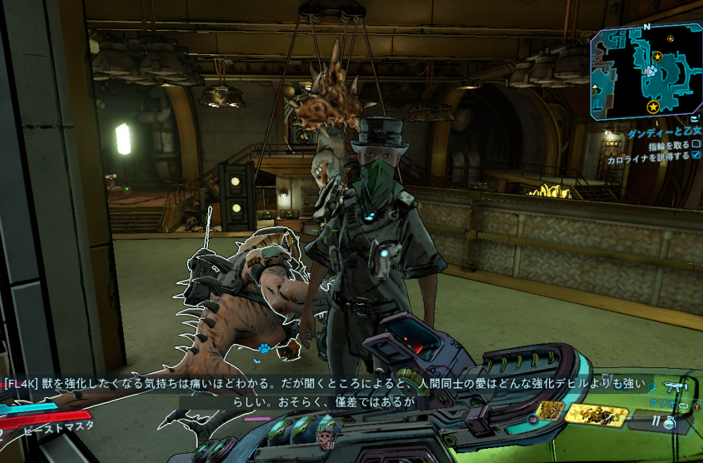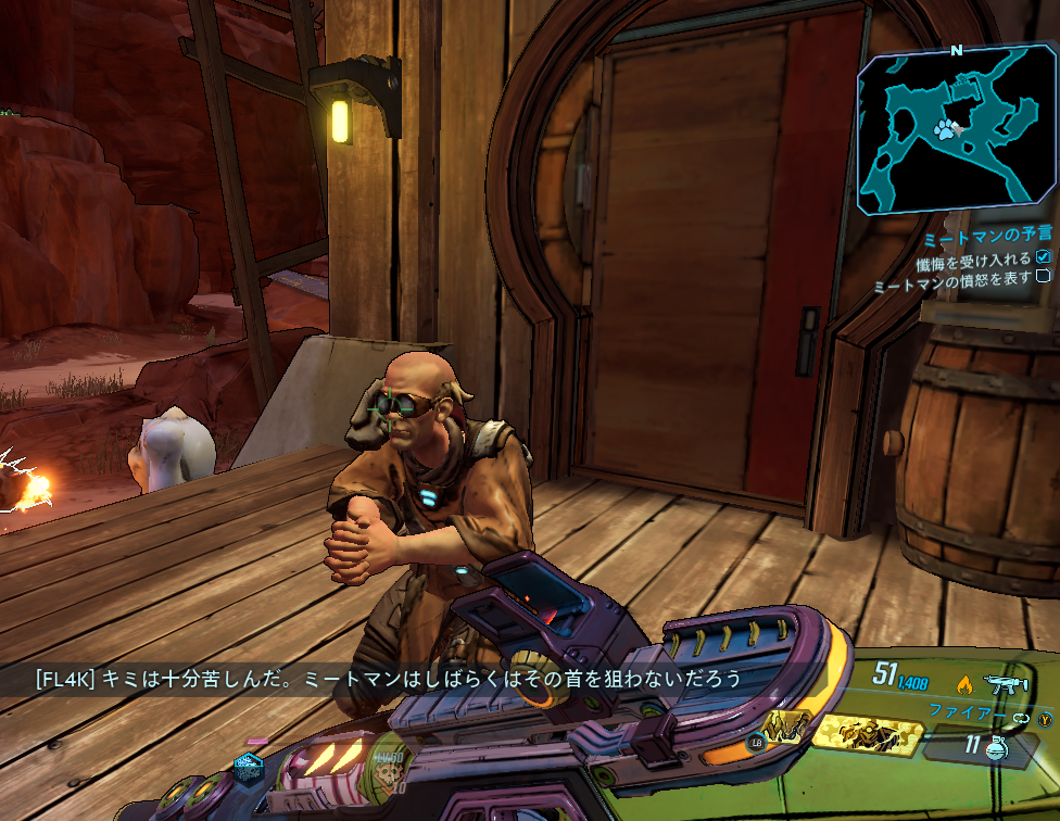 2020/08/04 Category : ボダラン3キャラ台詞 台詞:DLC3「荒野のヴォルト・ハンター」選択肢(FL4K) DLC3のメインストーリーとサイドミッションの 選択肢によって分岐する台詞のまとめ(未完成?) (2周するの面倒な人向け) メインストーリー/血みどろの石 →酒場の主人と話す →自動ピアノを撃つ サイドミッション:ミートマンの予言 →ジョーンズの懺悔を聞く →ミートマンの憤怒を表す →懺悔を受け入れる →恐怖心に火をつける サイドミッション:血とビーンズ →(どちらにも豆を渡さず)炎で缶を破壊する サイドミッション:ダンディと乙女 →指輪を取る →カロライナを説得する PR Comment0 Comment Comment Form お名前name タイトルtitle メールアドレスmail address URLurl コメントcomment パスワードpassword
